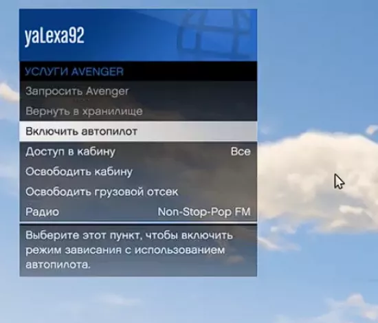 Чтобы включить автопилот в Avenger GTA 5, нужно: