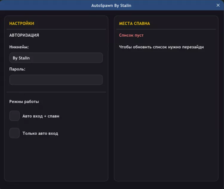 • 📍 Авто-спавн – Автоматический выбор точки появления