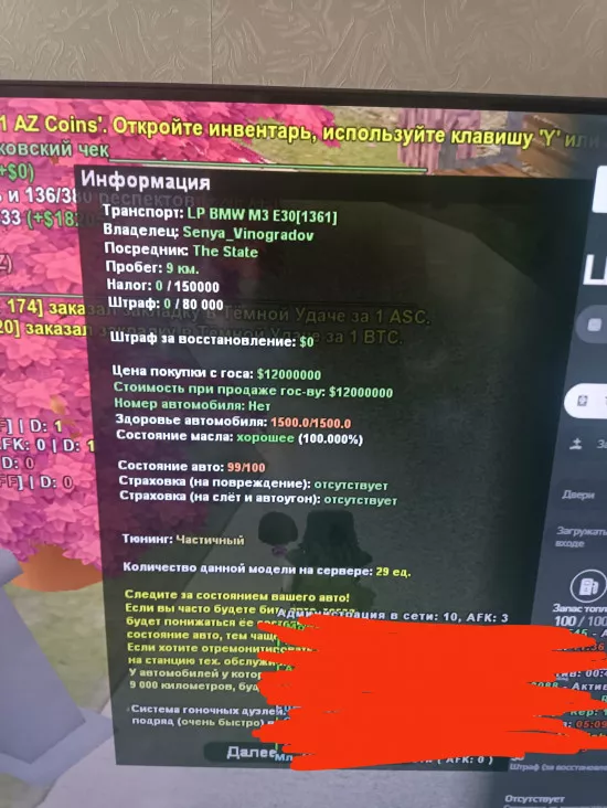 Госс цена LP BMW M3 E30 на Arizona RP 2026?